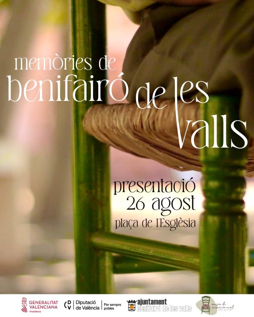 El Museu de Memòria Oral de Benifairó de les Valls és un projecte que naix a 2024 amb la intenció de reconéixer el patrimoni immaterial del nostre poble. Este primer any hem elaborat un documental “Memòries de Benifairó de les Valls” en el qual, a través d’entrevistes a persones majors del poble, s’han recollit una sèrie de narracions sobre el passat del poble i la cultura popular.